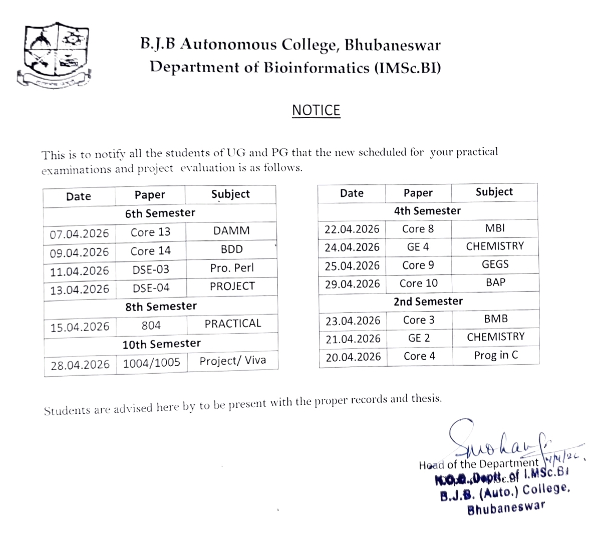 The new schedule for Practical Examinations and Project Evaluation for UG and PG students is as follows:
